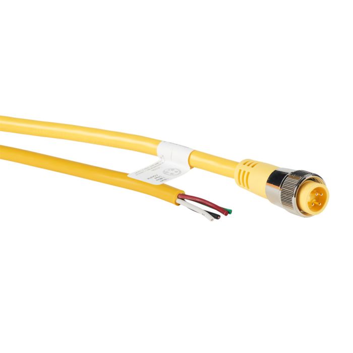 ZIPport cordset cable, 7/8in - 16 UN2 thread nut 4-pin male axial to pigtail with North American color code, PVC outer jacket, yellow, nickel-plated brass connector, 19.6ft/6m cable length, IP67.