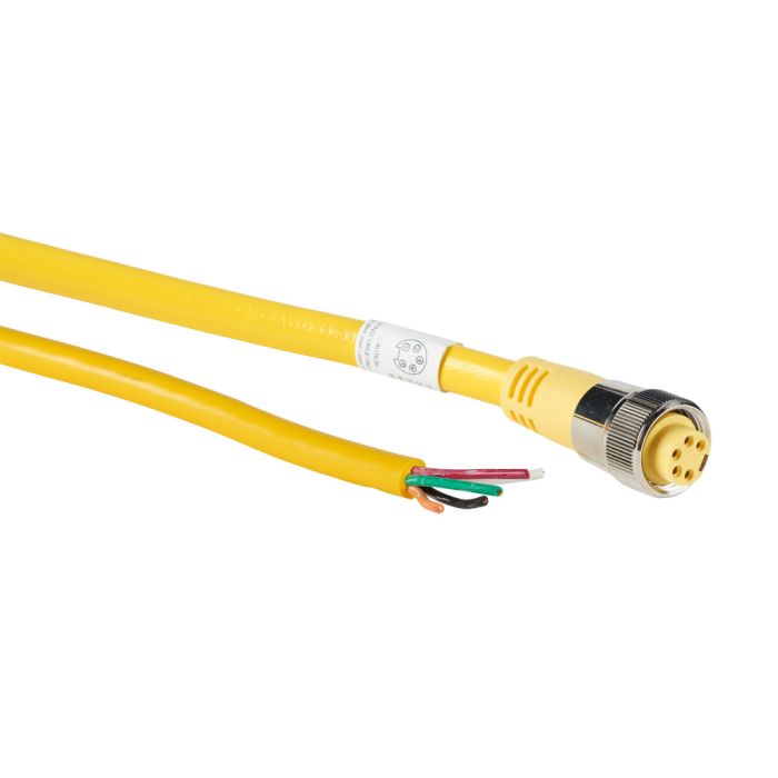 ZIPport cordset cable, 7/8in - 16 UN2 thread nut 5-pin female axial to pigtail with North American color code, PVC outer jacket, yellow, nickel-plated brass connector, 13.1ft/4m cable length, IP67.