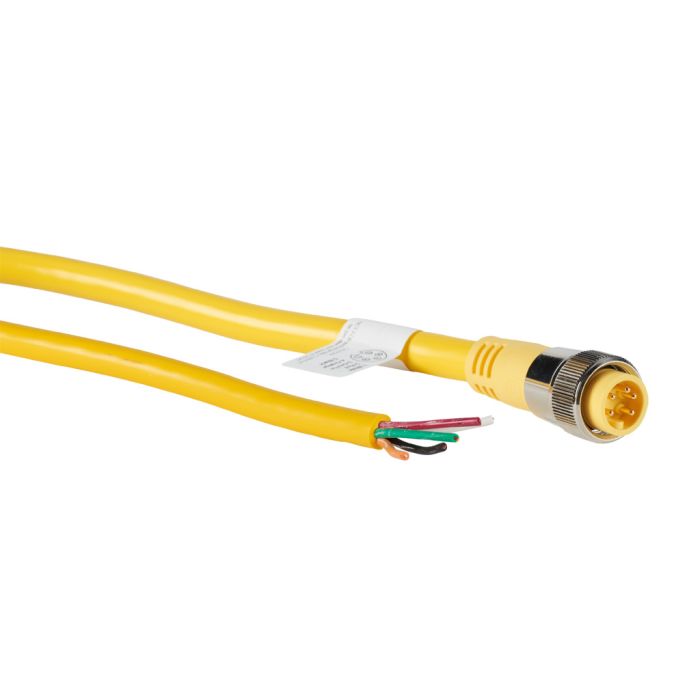 ZIPport cordset cable, 7/8in - 16 UN2 thread nut 5-pin male axial to pigtail with North American color code, PVC outer jacket, yellow, nickel-plated brass connector, 6.5ft/2m cable length, IP67.