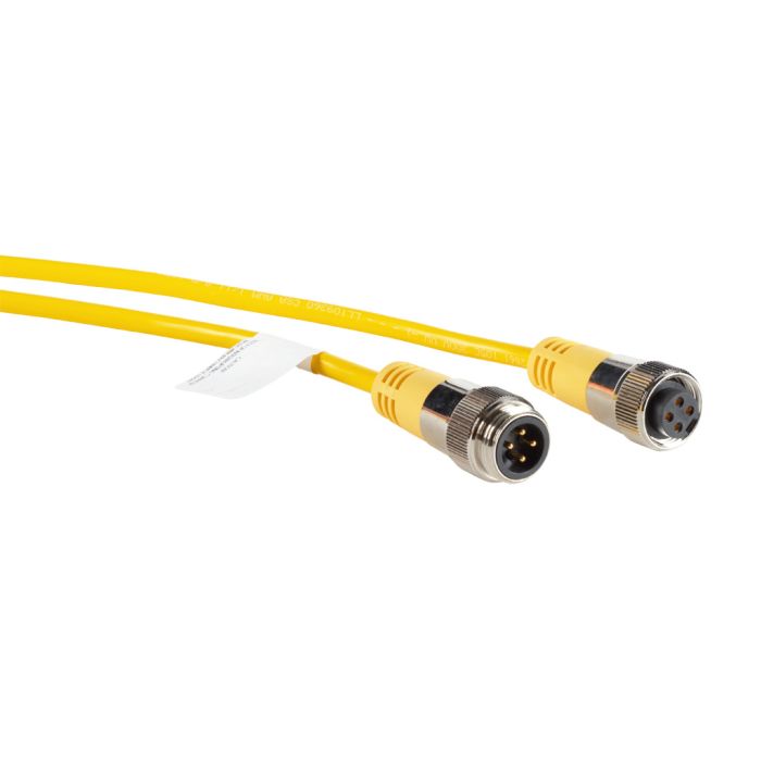 ZIPport patch cable, 7/8in - 16 UN2 thread barrel 4-pin male axial to 7/8in - 16 UN2 thread nut 4-pin female axial, PVC outer jacket, yellow, nickel-plated brass connector, 19.6ft/6m cable length, IP67.