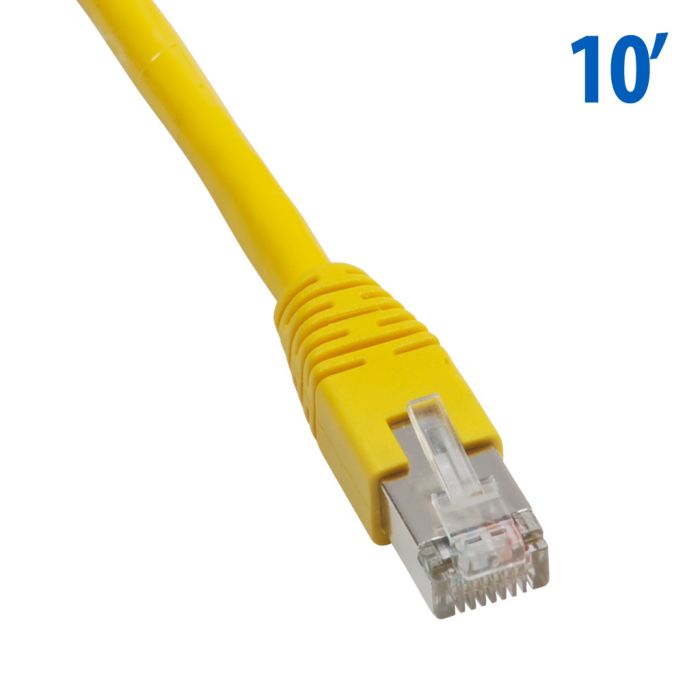 Cat5E straight-through patch cable, STP (overall foil shield), (2) RJ45 male connectors, 10ft cable length, yellow. For use with 10/100/1000 Mbps networks.