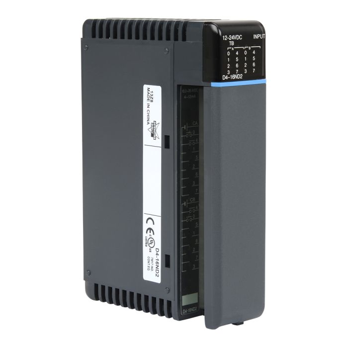 16-point 12-24 VDC current sourcing input module, 2 commons (isolated), removable terminal.