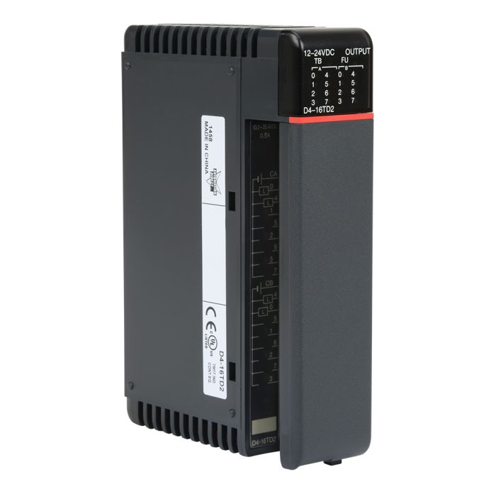 16-point 12-24 VDC current sourcing output module, 2 commons (isolated), 0.5A/point, 3A/common, removable terminal.