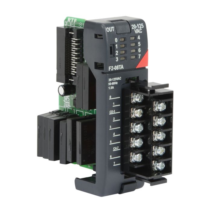 8-point 24-140 VAC high current output module, 2 commons (isolated), 1.5A/point, 4.0A/common, removable terminal.