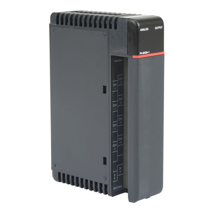 4-channel analog output module, 12-bit resolution, range: 4-20 mA. Designed to operate with 24VDC user-supplied power supply.