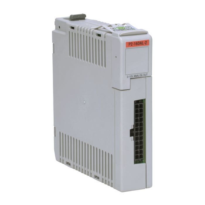 Productivity2000 analog output module, 16-channel, 12-bit resolution, output voltage signal range(s) of 0 - 10 VDC, external 24 VDC required.
