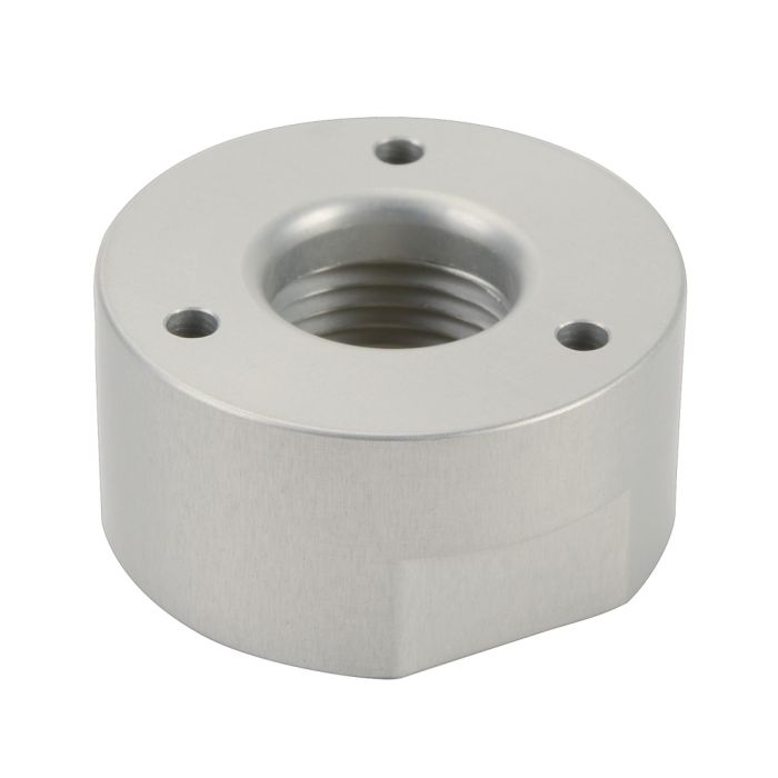Patlite NPT adapter, 40mm to 1/2in FNPT, aluminum, silver.