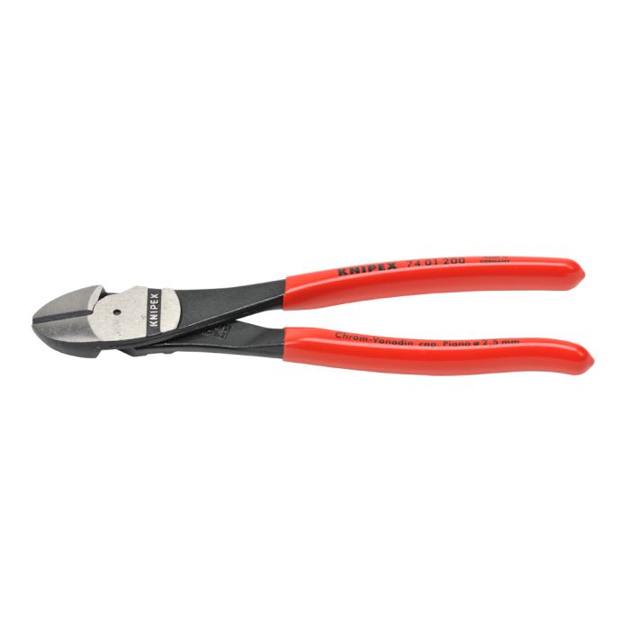 KNIPEX high leverage diagonal cutters, beveled cutting edges, 6 AWG medium hard wire capacity, 8in overall length.