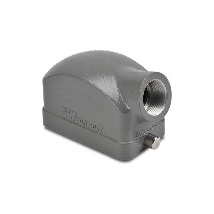 Hood for ZIPport multi-wire industrial connector, size 10B, 2-peg, side entry, (1) Pg 16 threaded hole, aluminum.