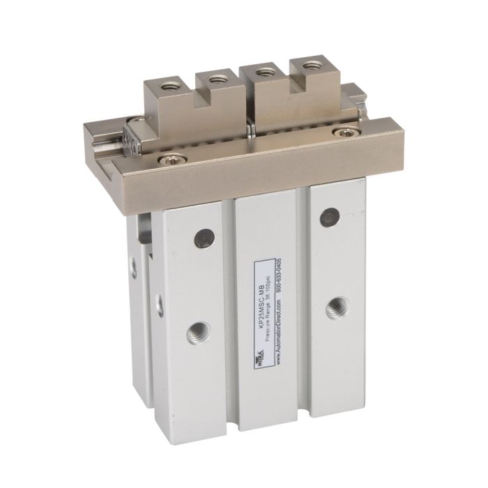 NITRA pneumatic gripper, parallel, single acting, N.C., 25mm bore, 14mm stroke, end mount grip, anodized aluminum body, M5 x 0.8 threaded port(s).