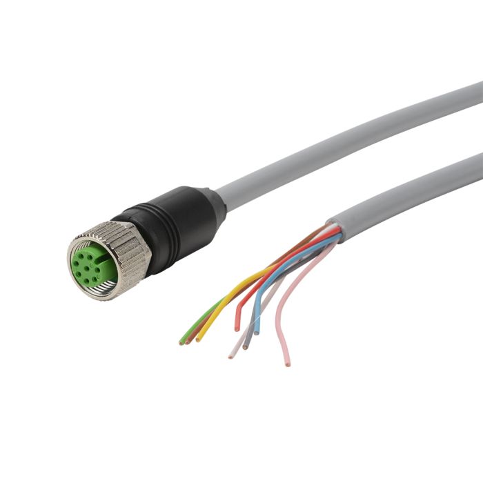 Cordset cable, M12 axial female to pigtail, 8-pole, PUR jacket, gray, 9.8ft/3m cable length, IP65 and IP67.