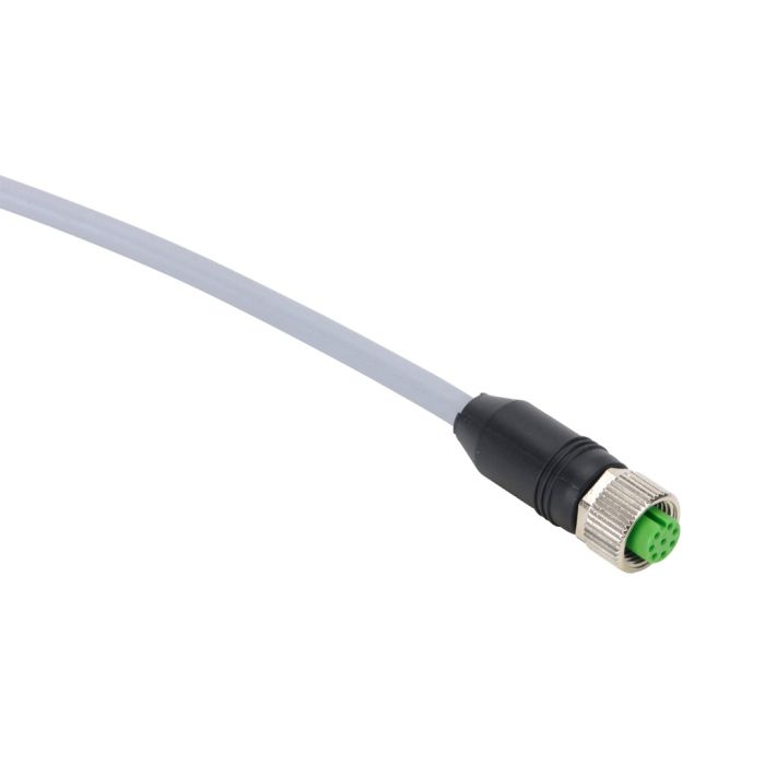 M12 cable for quick-disconnect sensors, 12mm axial female, 8-pole, gray PUR outer jacket, 3 meter (9.84 ft) length, IP67 rated.