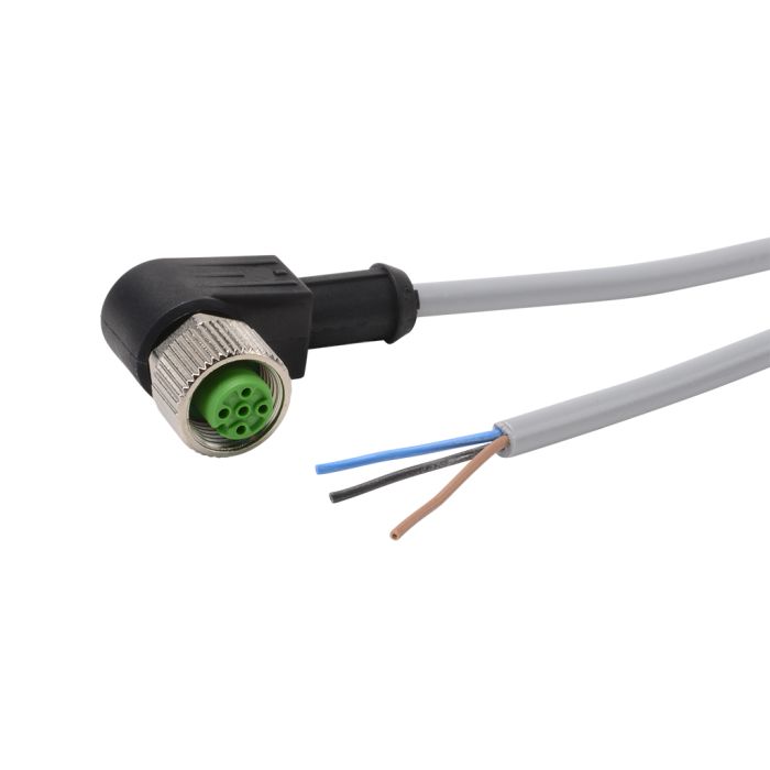 Cordset cable, M12 right-angle female to pigtail, 3-pole, PVC jacket, gray, 16.4ft/5m cable length, IP65 IP66K IP67.
