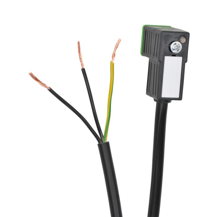 Solenoid valve cable 9.4mm DIN style molded connector to 3-wire pigtail, 110 VAC, 18 AWG, PVC jacket, 9.8ft/3m cable length, surge protection, LED indication.