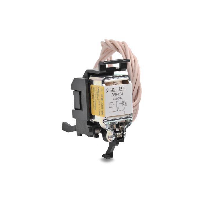 DC shunt trip, field installable, for Fuji BW125 and BW250 series MCCBs; 24 VDC/AC, left and right side mounting.