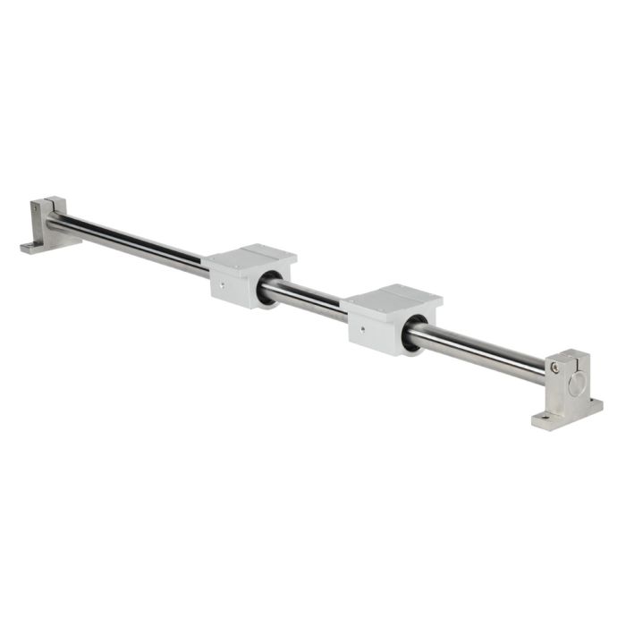 SureMotion linear slide assembly, end supported, round shaft, 1 inch diameter, 36in overall length, carbon steel. (2) single pillow blocks included.