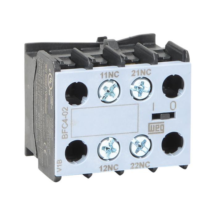 WEG Electric auxiliary contact, front mount, (2) N.C. contact(s), 10A @ 240 VAC. For use with any 4-pole CWC07 through CWC016 series miniature contactor.