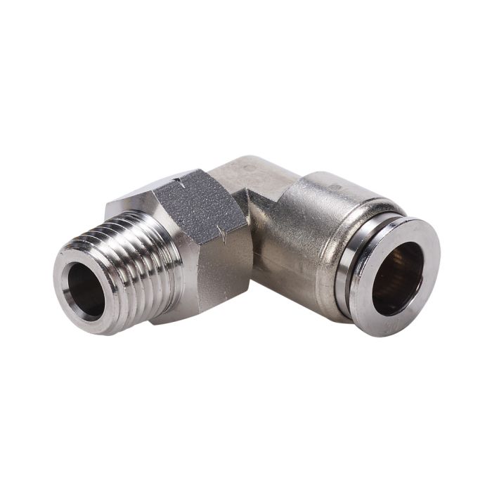 NITRA pneumatic push-to-connect fitting, male, elbow, rotating, 316 stainless steel body, 316 stainless steel threads, 3/8in tube to 1/4in NPT connection(s).