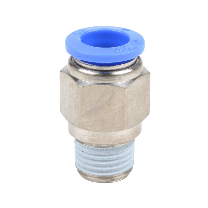 NITRA pneumatic push-to-connect fitting, male, straight, nickel-plated brass body, nickel-plated brass threads, 10mm tube to R1/4 BSPT connection(s). Package of 5.