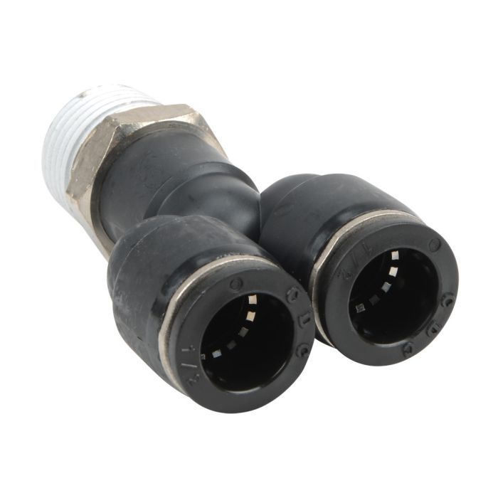 NITRA pneumatic push-to-connect fitting, male, Y, rotating, thermoplastic (PBT) body, nickel-plated brass threads, (2) 1/2in tube to 1/2in NPT connection(s). Package of 5.