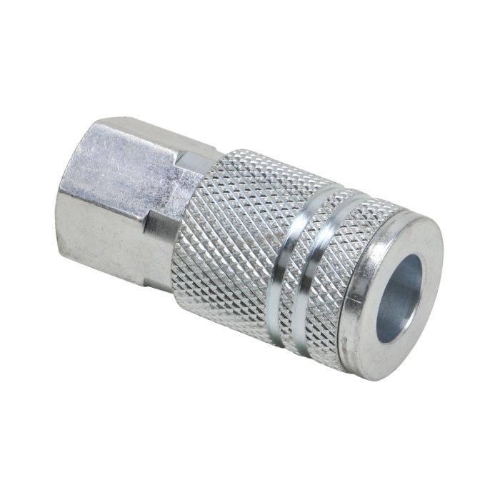 NITRA pneumatic quick disconnect fitting, coupling, steel body, 1/4in industrial interchange plug to 1/4in female NPT.