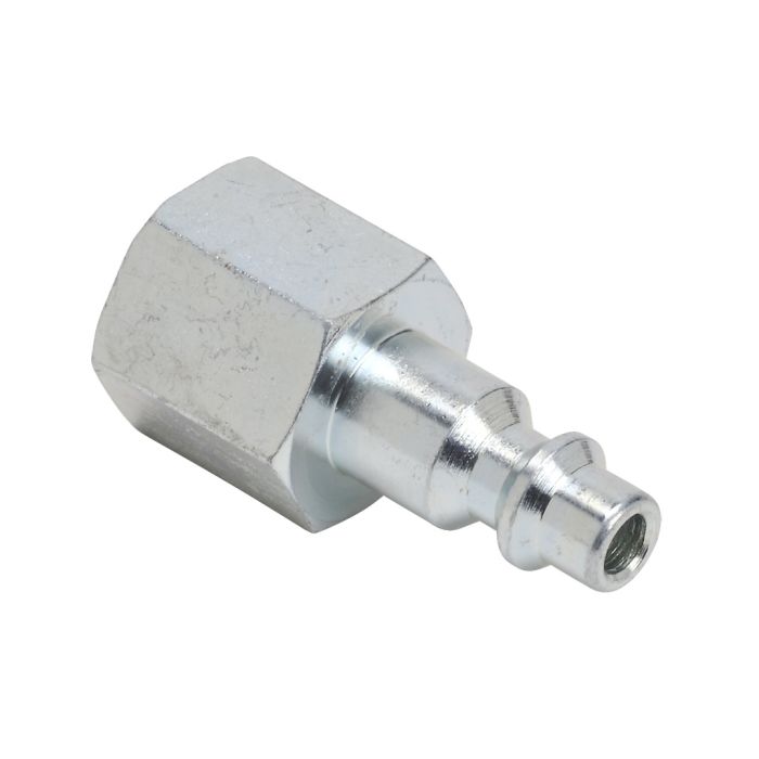 NITRA pneumatic quick disconnect fitting, coupling plug, steel body, 1/4in industrial interchange plug to 3/8in female NPT.