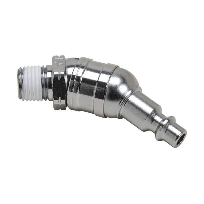 NITRA pneumatic quick disconnect fitting, swivel, chrome-plated steel body, 1/4in industrial interchange plug to 1/4in male NPT.