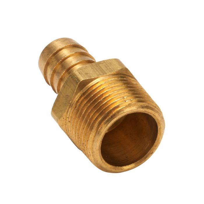 NITRA threaded fitting, hose barb, brass body, brass threads, (1) 5/8in hose to (1) 3/4in male NPT connection(s). Package of 3.