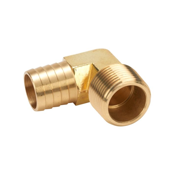 NITRA threaded fitting, hose barb elbow, brass body, brass threads, (1) 1in hose to (1) 1in male NPT connection(s). Package of 1.