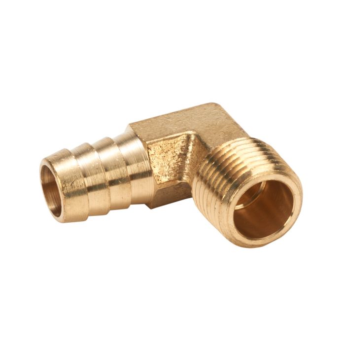 NITRA threaded fitting, hose barb elbow, brass body, brass threads, (1) 5/8in hose to (1) 1/2in male NPT connection(s). Package of 3.