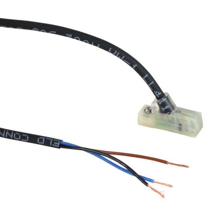 NITRA cylinder switch, rectangular, PNP, N.O. output, 5-28 VDC operating voltage, LED indication, 9.8ft (3.00m) 3-wire pigtail with wire leads, 6.5 x 3.2mm T-slot mount, for position sensing.