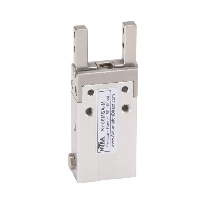 NITRA pneumatic gripper, parallel, single acting, N.O., 6mm bore, 4mm stroke, side mount grip, anodized aluminum body, M3 x 0.5 threaded port(s).