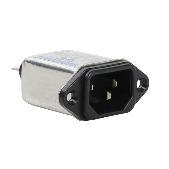 Roxburgh IEC inlet filter, 120/240 VAC, 1-phase, 6A, screw mount, EMI/RFI filtering, 1-stage, general purpose, standard performance, 1/4in quick-disconnect.