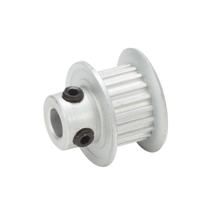 SureMotion timing pulley, aluminum, 0.08in MXL pitch, 20 tooth, 0.5in pitch diameter, 3/16in bore, hub with flanges. For use with 1/4in wide belt.
