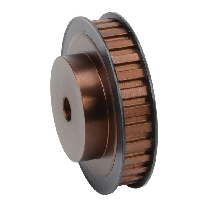 SureMotion timing pulley, 3/8 (0.375) inch L pitch, 1/2 inch wide belt, 30 tooth, 3.581 inch pitch diameter, 1/2 inch bore, flanged with hub, steel.