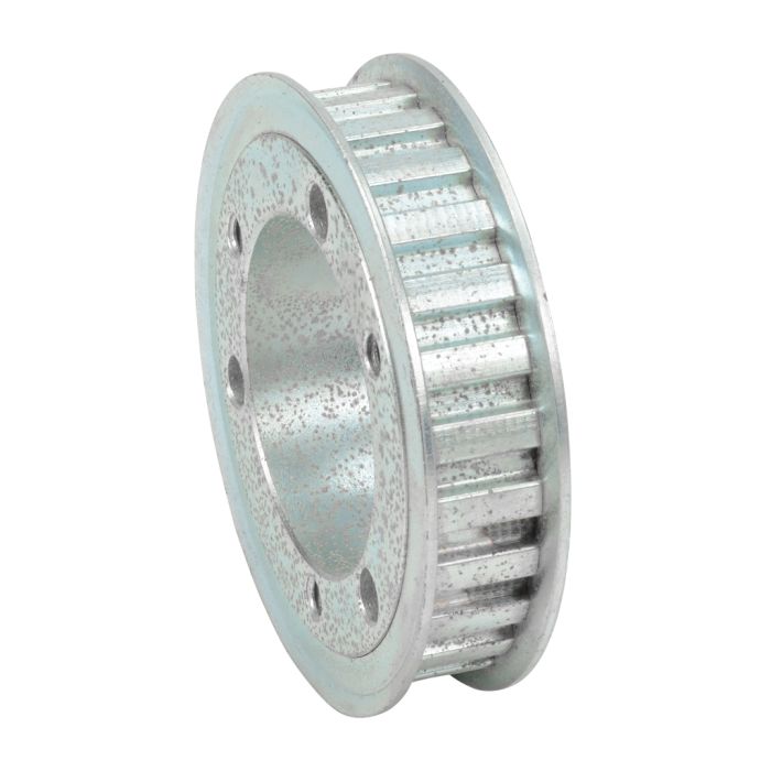 SureMotion timing pulley, 3/8 (0.375) inch L pitch, 1/2 inch wide belt, 26 tooth, 3.104 inch pitch diameter, flanged without hub, steel, SH bushing required.