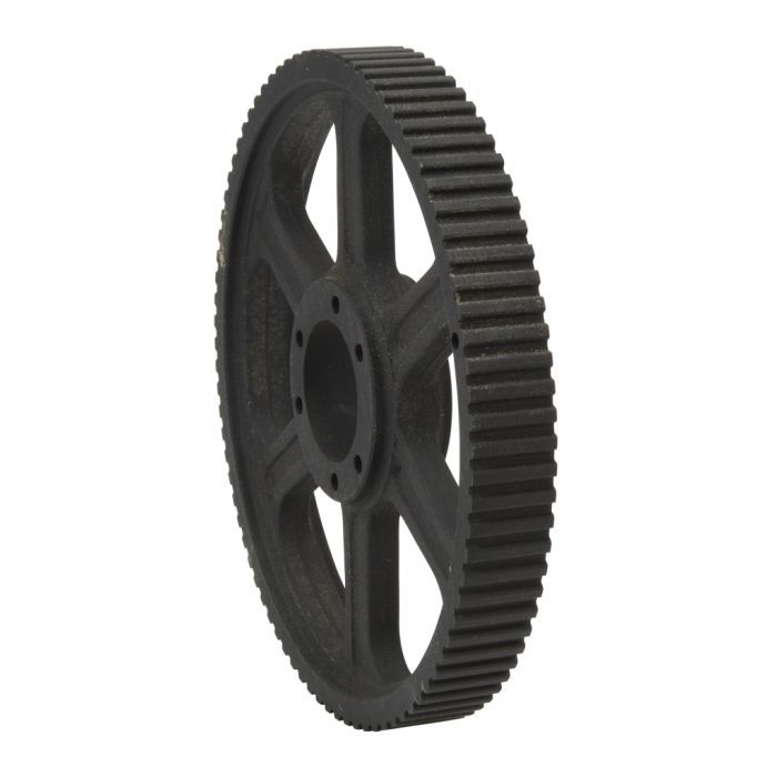 SureMotion timing pulley, 3/8 (0.375) inch L pitch, 1 inch wide belt, 84 tooth, 10.027 inch pitch diameter, flanged without hub, cast iron, SD bushing required.