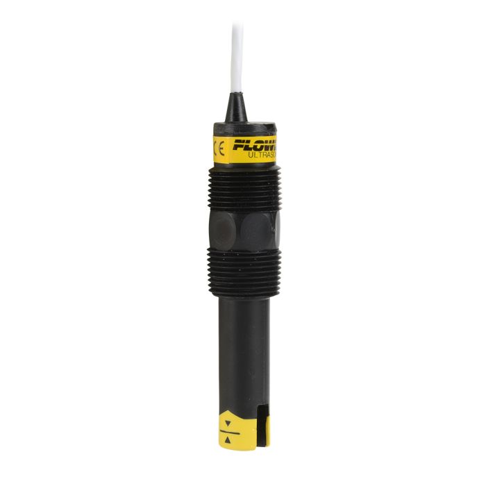 Flowline Switch-Tek ultrasonic liquid level switch, polypropylene, 2.1 inch insertion length, 3/4 inch NPT male, SPST relay, 12-36 VDC, 10-foot cable.