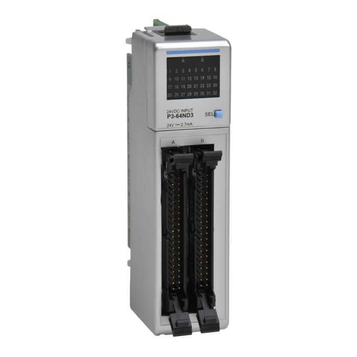 Productivity3000 discrete input module, 64-point, 24 VDC (+/-10%), sinking/sourcing, 8 common(s), isolated, 8 point(s) per common.