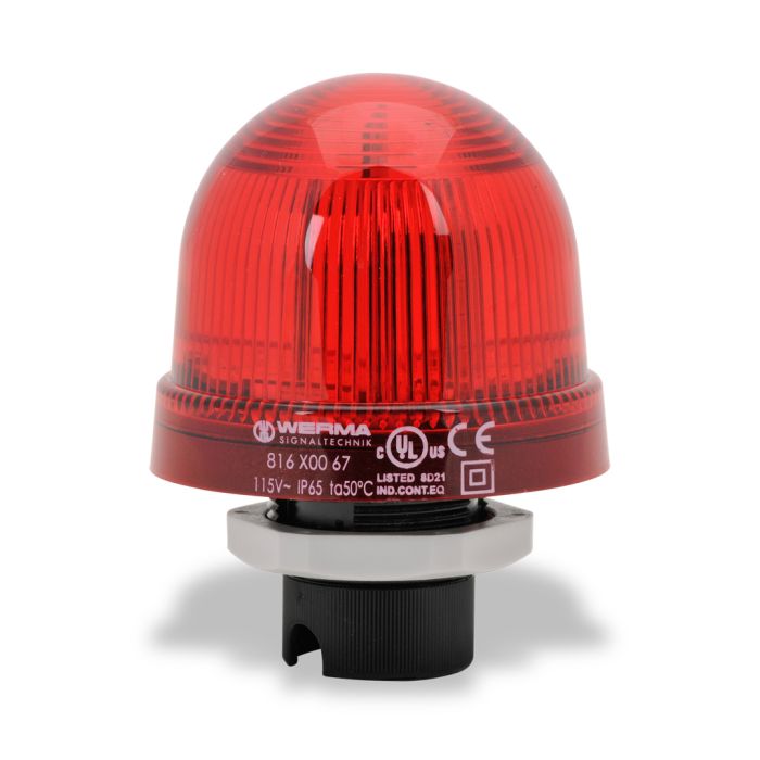 WERMA LED industrial signal beacon, 75mm, red, permanent, IP65, 37mm (PG 29) mount, 115 VAC.