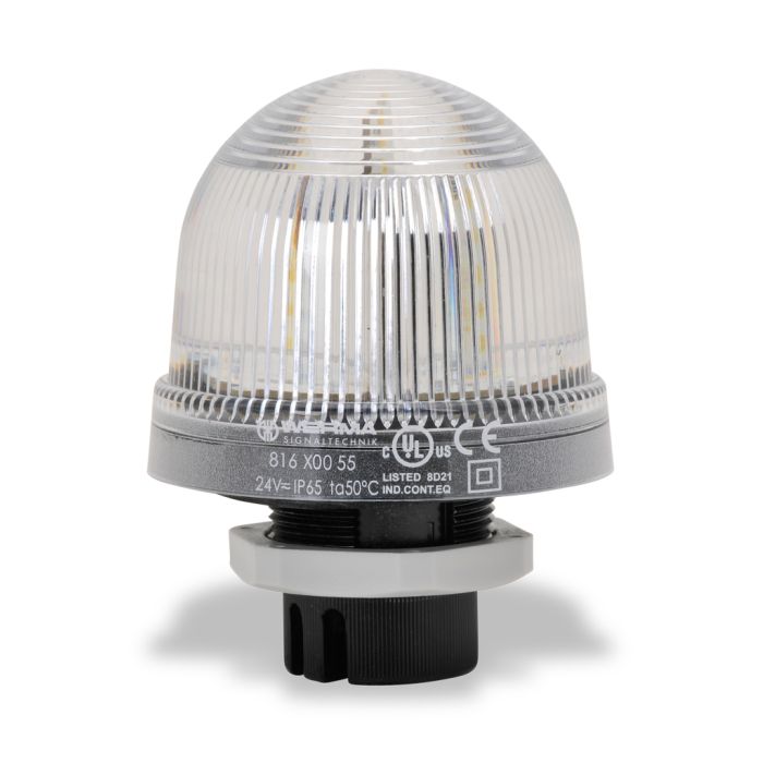 WERMA LED industrial signal beacon, 75mm, clear/white, permanent, IP65, 37mm (PG 29) mount, 24 VAC/VDC.
