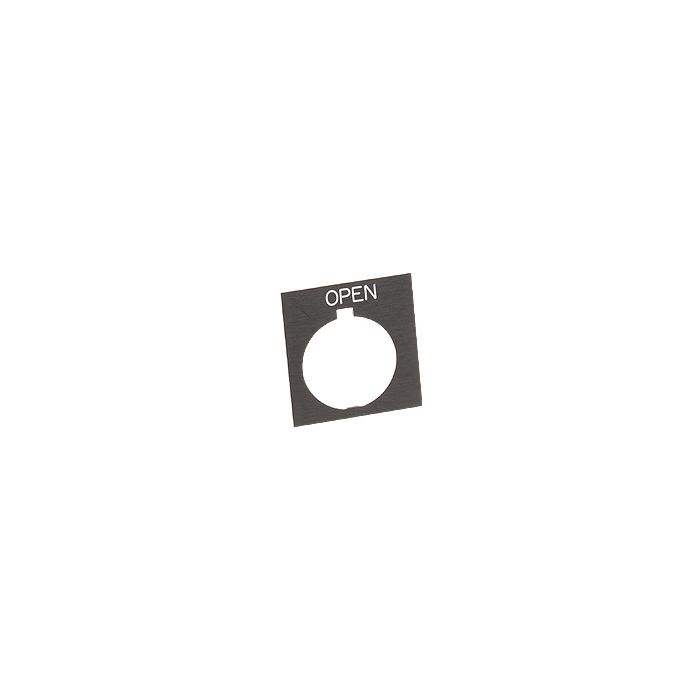 Eaton legend plate, plastic, black field, black background, white engraved text, legend plate marking "OPEN". For use with 30mm pushbuttons.