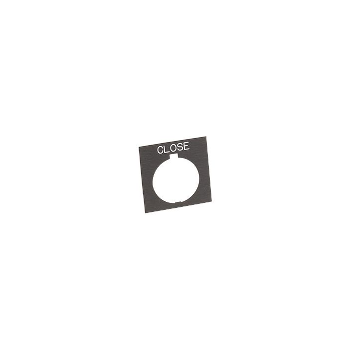 Eaton legend plate, plastic, black field, black background, white engraved text, legend plate marking "CLOSE". For use with 30mm pushbuttons.