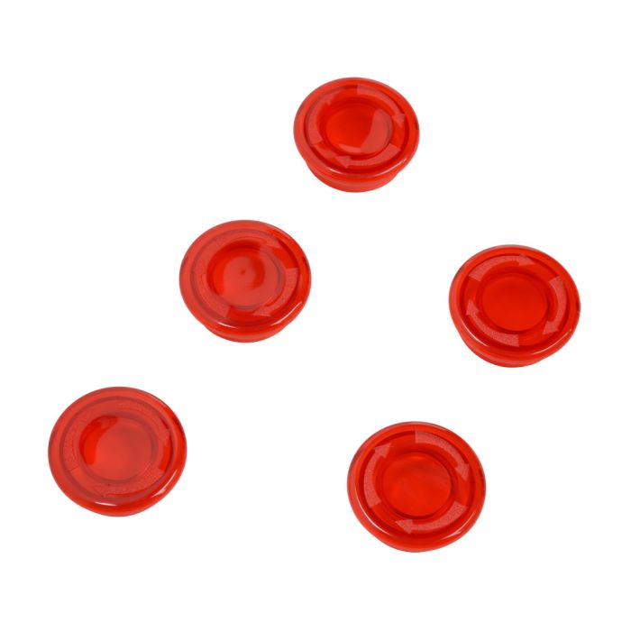 Lens, replacement, mushroom, red. Package of 5. For use with GCX1226 or GCX3226 series pushbuttons.
