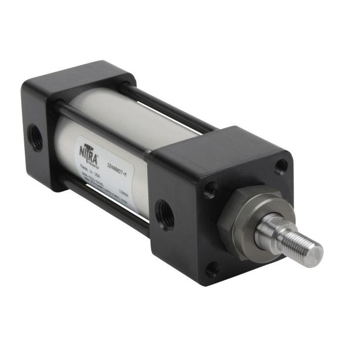 NITRA pneumatic air cylinder, NFPA tie rod, 1-1/2in bore, 2in stroke, double acting, magnetic piston, tapped end caps mount.