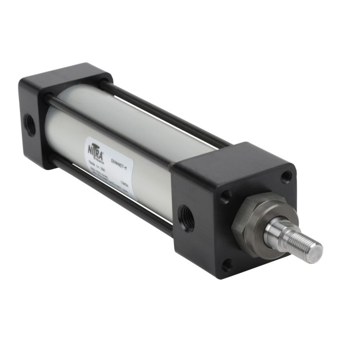 NITRA pneumatic air cylinder, NFPA tie rod, 1-1/2in bore, 4in stroke, double acting, magnetic piston, tapped end caps mount.
