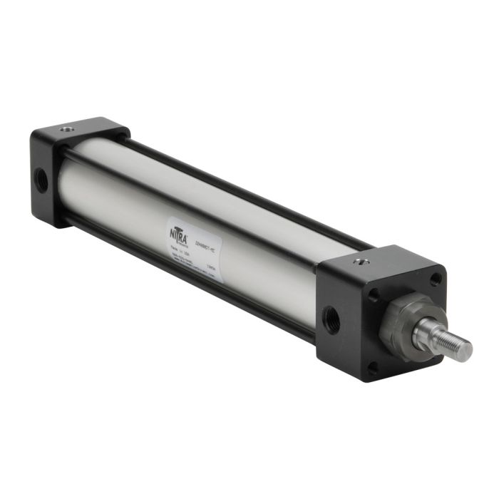 NITRA pneumatic air cylinder, NFPA tie rod, 1-1/2in bore, 8in stroke, double acting, magnetic piston, front and rear adjustable cushions, tapped end caps mount.