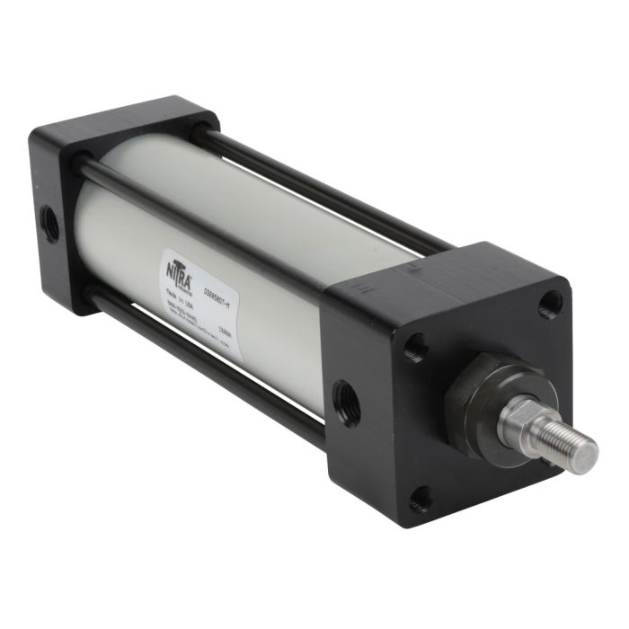 NITRA pneumatic air cylinder, NFPA tie rod, 2in bore, 5in stroke, double acting, magnetic piston, tapped end caps mount.