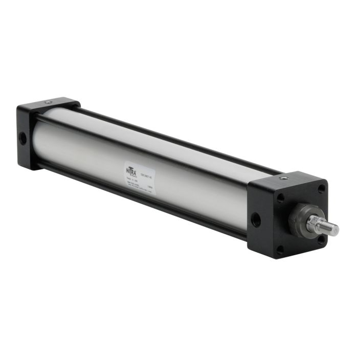 NITRA pneumatic air cylinder, NFPA tie rod, 2in bore, 12in stroke, double acting, magnetic piston, front and rear adjustable cushions, tapped end caps mount.