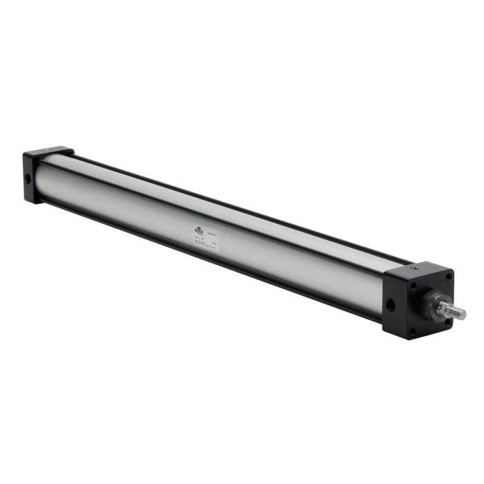 NITRA pneumatic air cylinder, NFPA tie rod, 2in bore, 24in stroke, double acting, magnetic piston, front and rear adjustable cushions, tapped end caps mount.